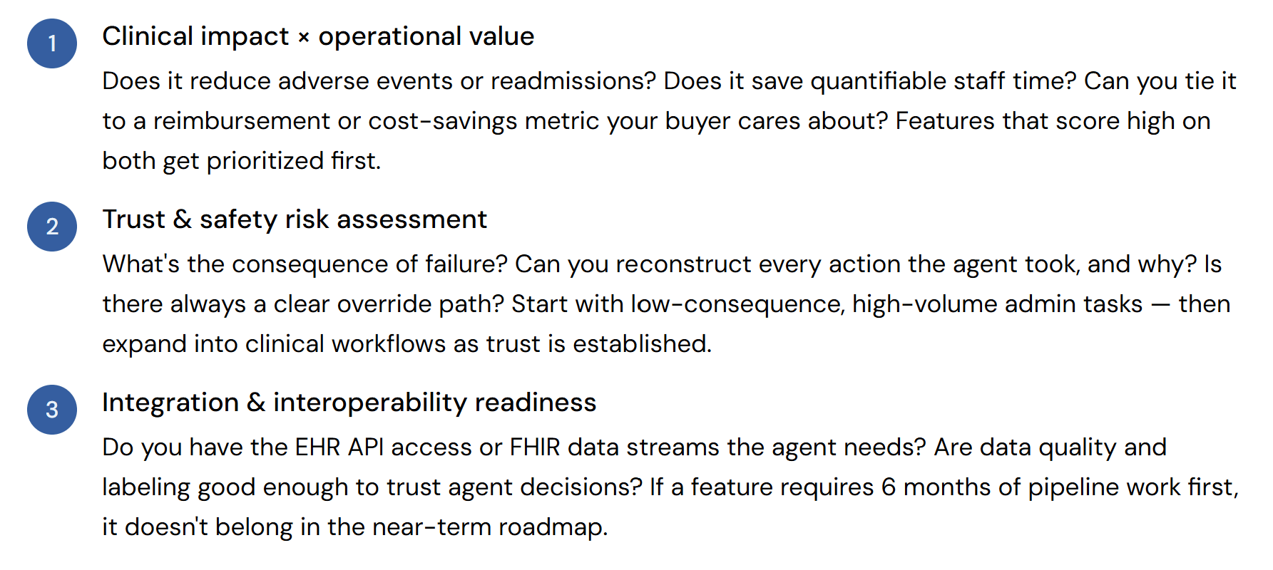 Building agentic features in healthcare isn't just a software challenge… it's regulatory, clinical, and organizational all at once. Three forces shape every roadmap decision:
